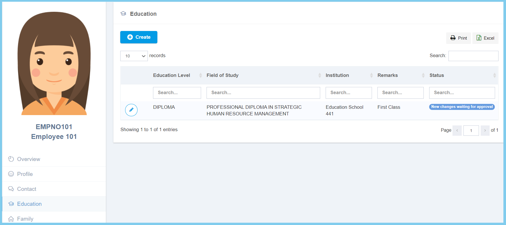 | Institute | Any alphanumeric | Enter the institute name of where the employee study from. |