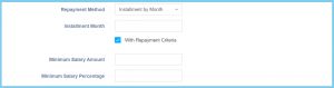 Minimum Salary Percentage Any number Enter the minimum salary percentage that only can apply advance salary. This configuration will show when the selection of repayment method is Installment by Month and Installment by Fix Amount.