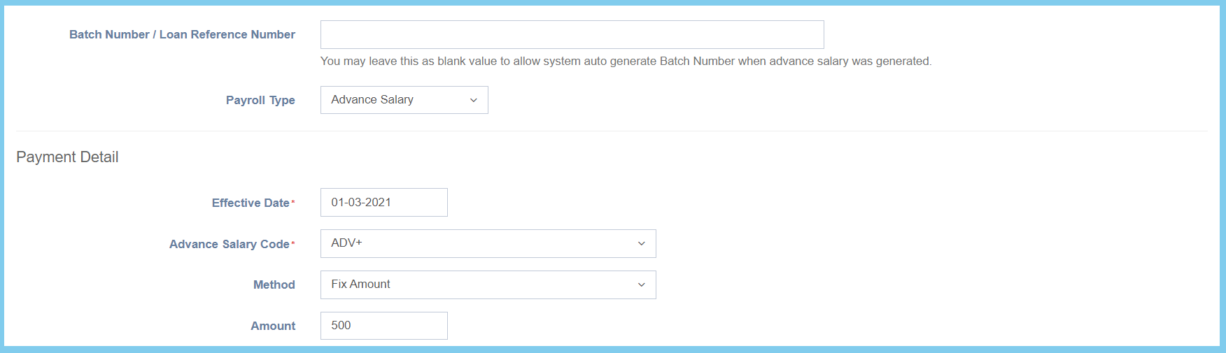 Select the method of advance salary from option available.