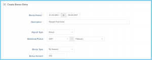 Select the payroll type of bunus from option available. |