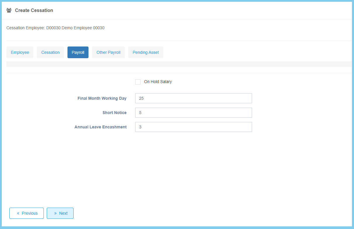 Note: Once done create Cessation for employee, remember to confirm it. Click here to view how to confirm the cesssation of an employee.
