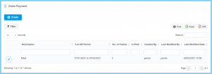 | Cut Off Period | Select date from calendar | Select the start date and end date of cut off period for this claim payment. |