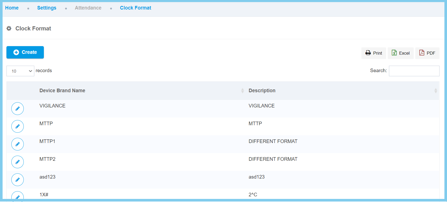 Device Brand Name Any alphanumeric To set up for the particular clock device brand name.