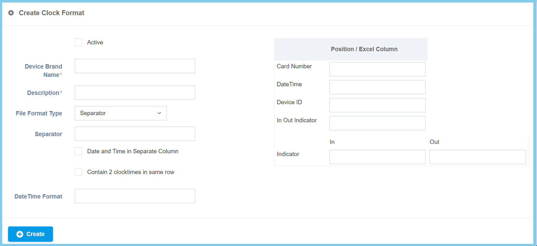 To choose which of the three type clock file format to be upload it either in excel, fix position or separator.