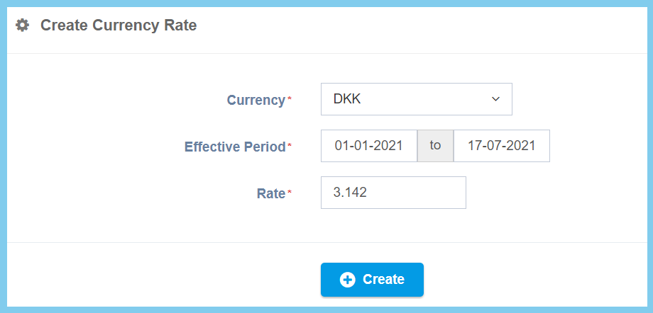 | Effective Period | Choose date from the calendar given | Set the rate duration of effective period for currency rate. |