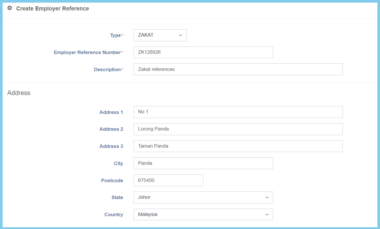 | Employer Reference Number | Any alphanumeric | Set the reference number for the selected references type. |