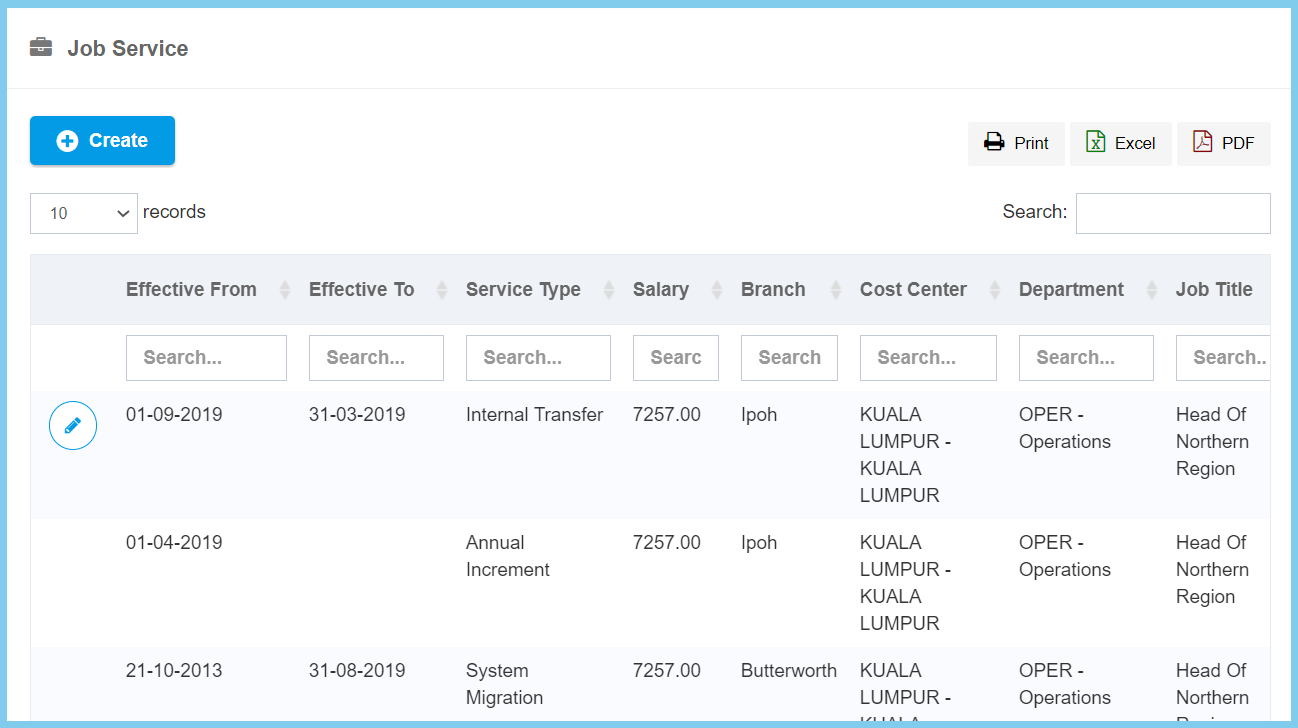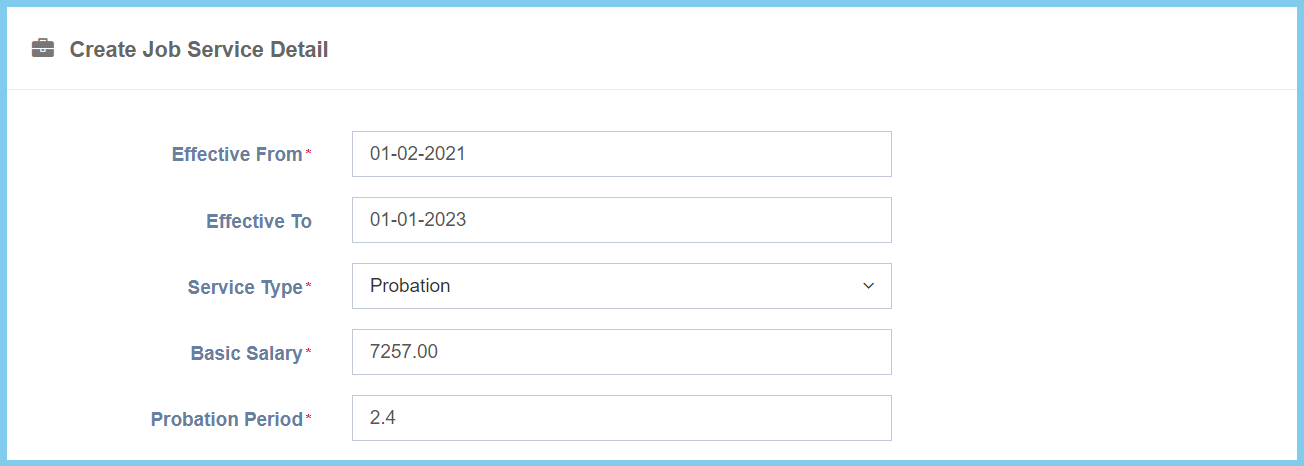 | Effective From | Select date from calendar | Select the effective start date of job service with this employee from calendar available. |