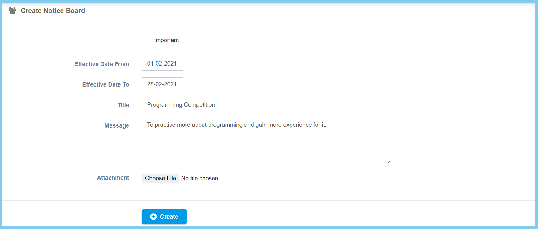 Effective Date From Select date from calendar Select the notice effective start date from calendar available.
