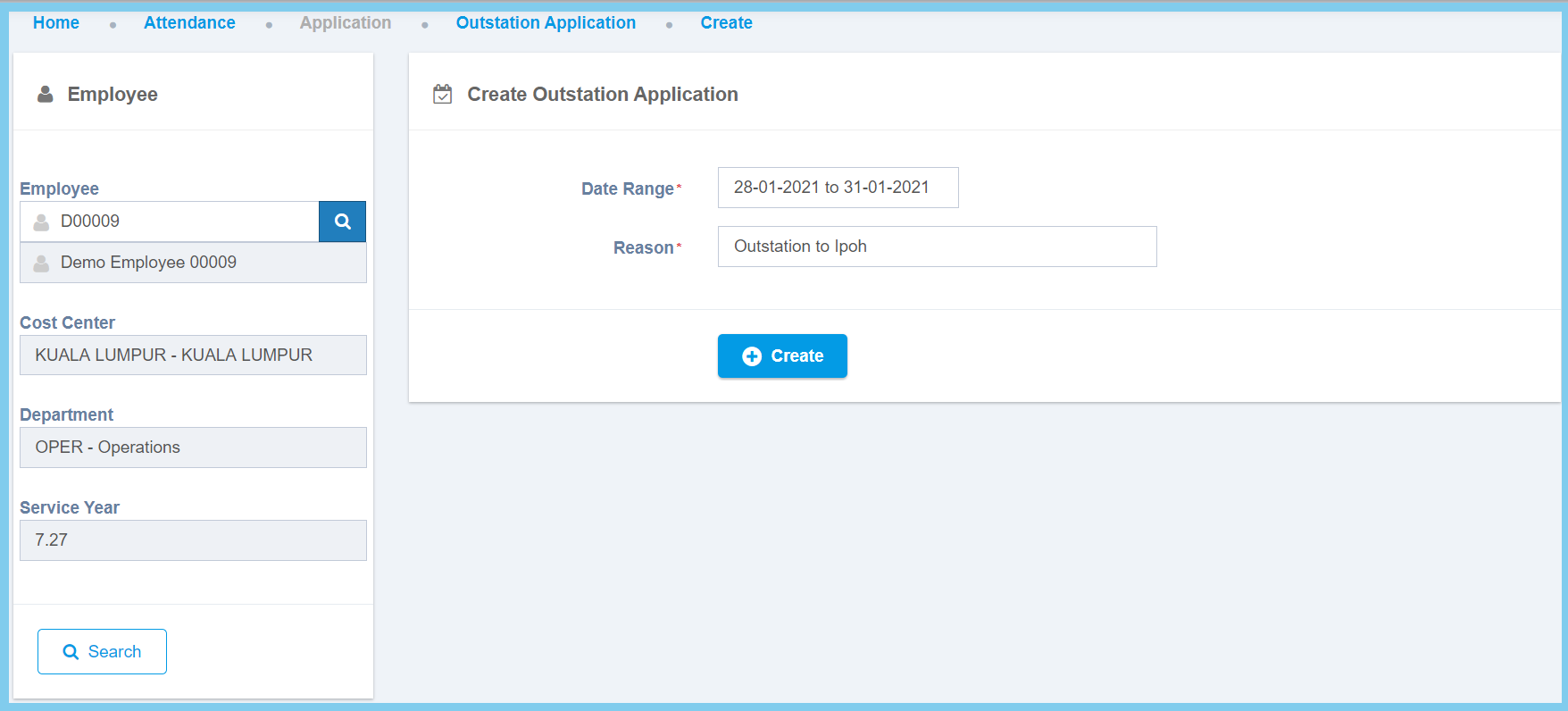 Note: After apply outstation application, in time sheet, the employee would not show absent on that day.