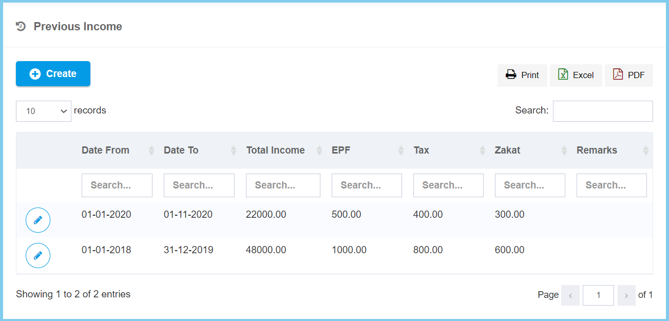 Date From Select date from calendar Select the start date for previous income from calendar available.