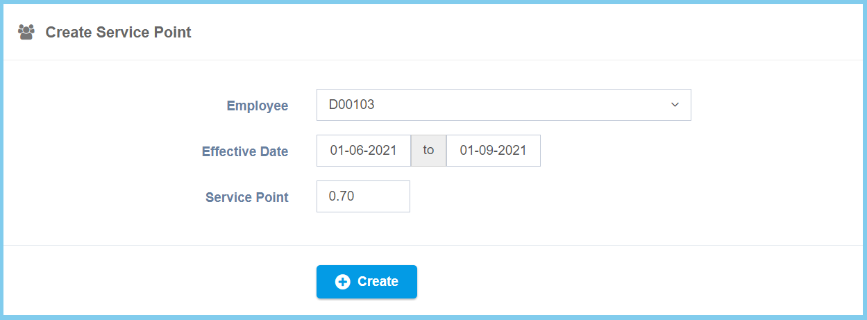 Effective Date Select date from calendar Select the effective start date and end date of service point.