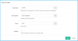 Description Any alphanumeric Any description about this add on item.