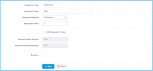| Repayment Value | Any number | Enter the value of repayment. |