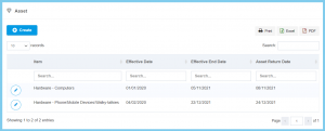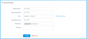 Asset Return Date Select date from calendar Select the return date for the employee to return the items back from calendar available.