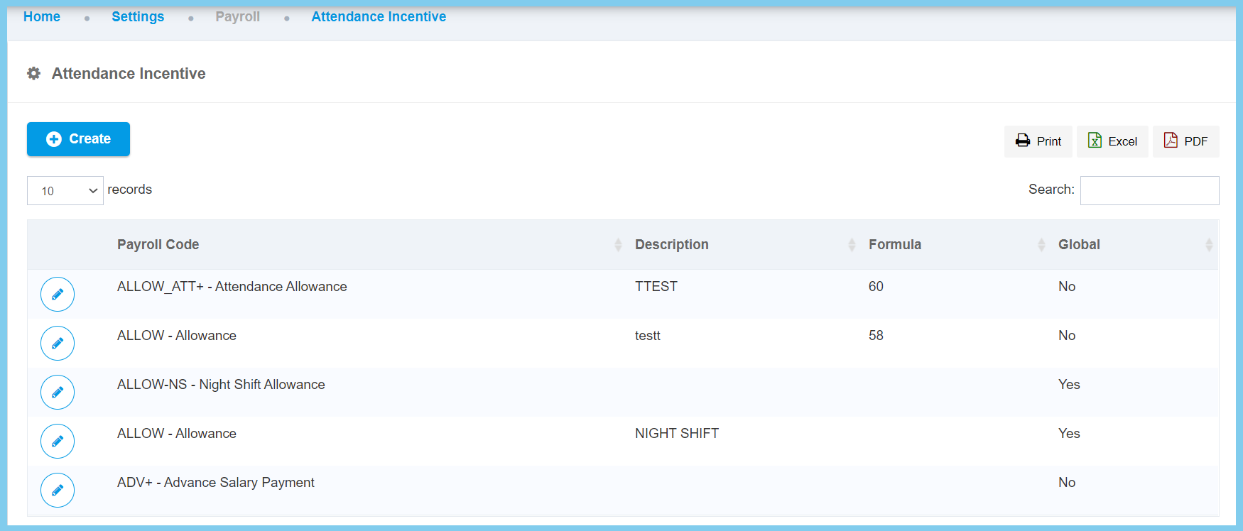 | Description | Any alphanumeric | Any description about this attendance incentive. |