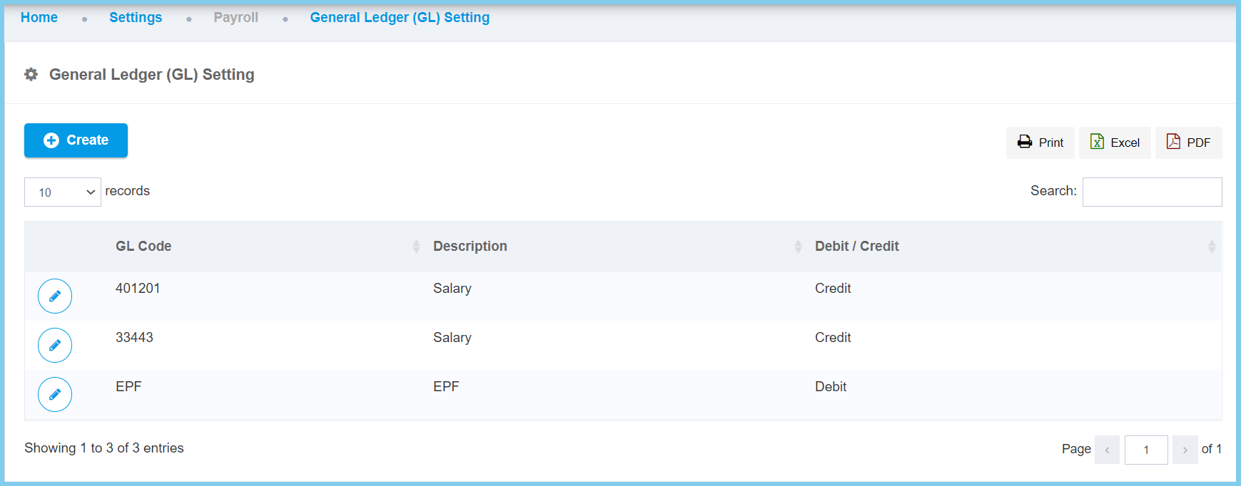 | GL Code | Any alphanumeric | To set a simple and unique code for GL setting. |