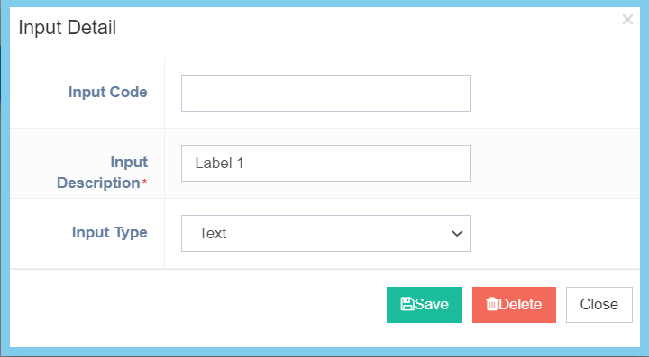 | Input Description | Any alphanumeric | Any description about this input code. |