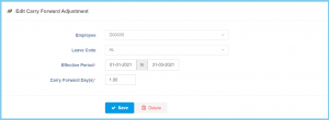 Effective Period Select date from calendar Select the effective start date and end date of this leave carry forward adjustment from calendar available.