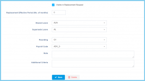 | Additional Criteria | Any alphanumeric | Any additional criteria about this leave code. |