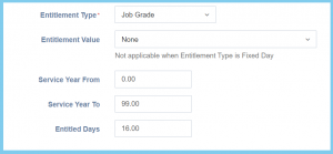 | Service Year From | Any number | Set the value of service year from which the entitlement is eligibility for employee. |