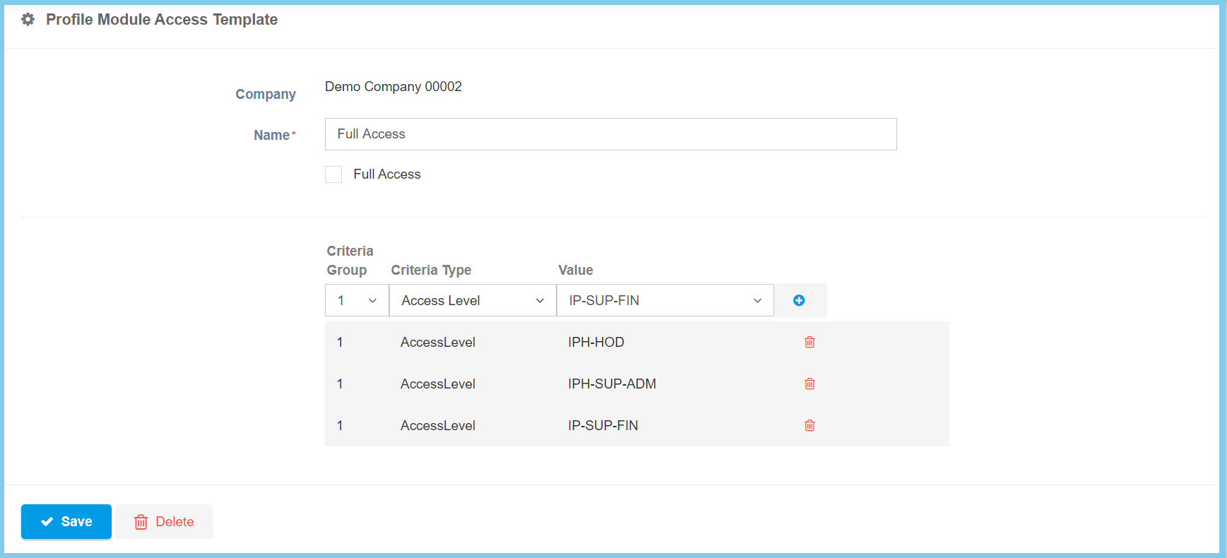 | Criteria Type | Choose from criteria type | Choose one criteria type for this profile access template. |