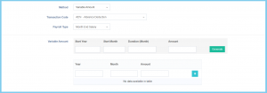 Start Year Any number Enter the start year of the recurring transaction. This configuration will show when the selection of method is Variable Amount.