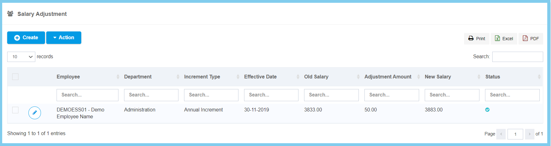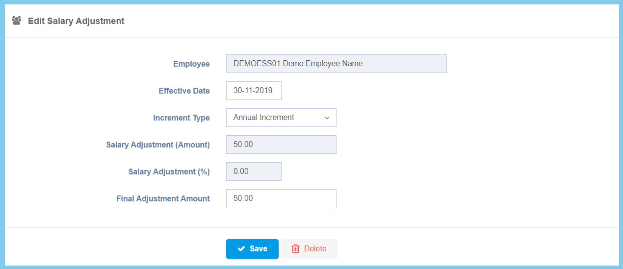 | Effective Date | Select date from calendar | Select the effective date of salary adjustment from calendar available. |