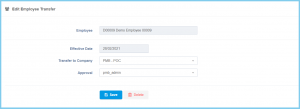 Transfer to Company Selection from company Select the company that which the employee transfer to.