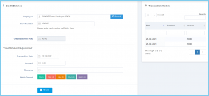 Amount Any number Enter the amount that you wish to reload into employee card.