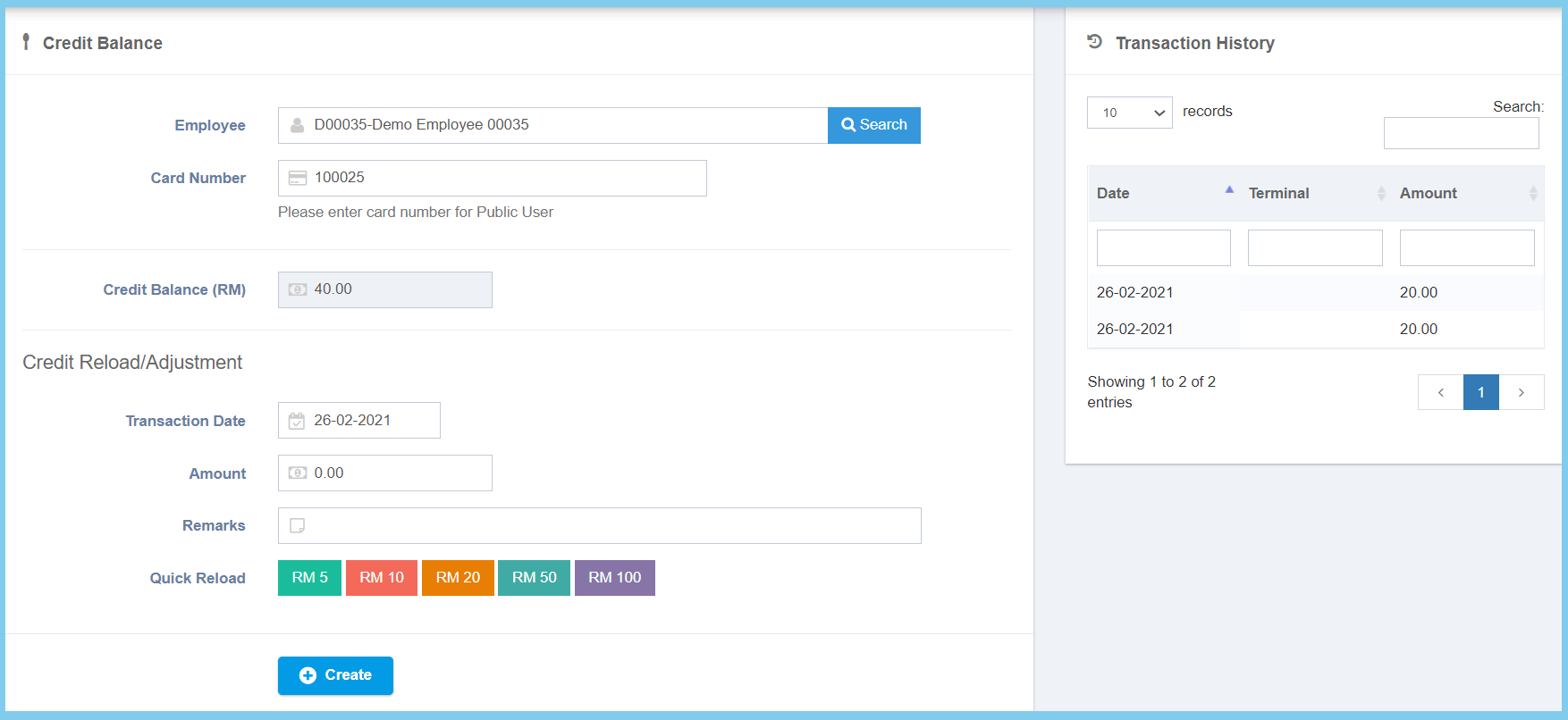 Note: After complete the from, you can straight click on which amount that u wish to reload on Quick Balance. The transaction will show on the right box.