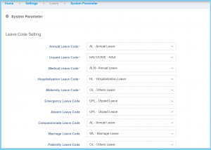 | Paternity Leave Code | Setup from leave code | To set the paternity leave code by select from leave code option that available. |