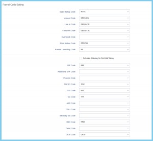 | Basic Salary Code | Choose from Transaction Code | This setting is to configure the default code for basic salary. |